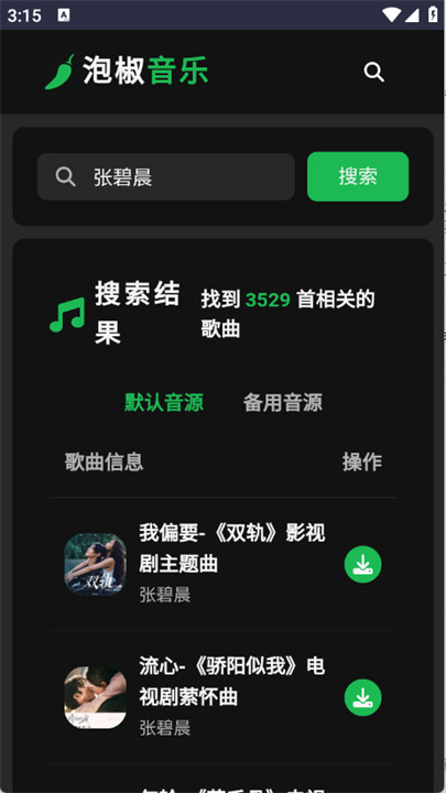 2、在搜索框中输入你喜欢的歌手名或歌曲名,然后按下搜索键,系统会快速显示与之相关的丰富音乐资源供你选择。