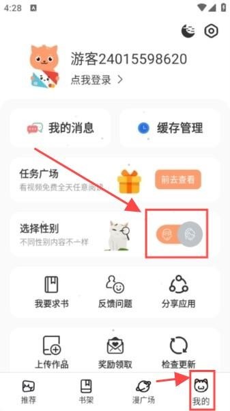 2、不同性别会影响内容推荐,在软件右下角“我的”页面,点击选择性别功能旁的头像就可以自由切换。