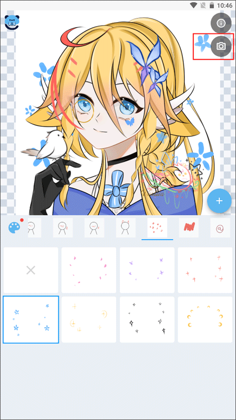 2、在界面中如需编辑图片,可使用下方的功能选项,点击右上角的相机图标;