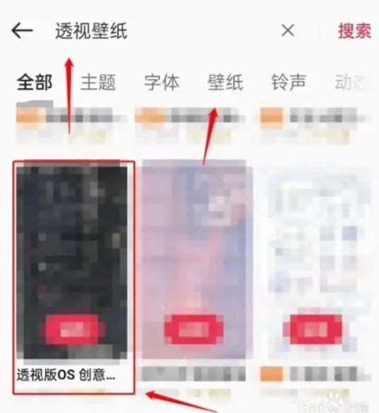 2、接着输入“透视壁纸”进行搜索,在搜索结果中点击进入对应的透视壁纸页面。