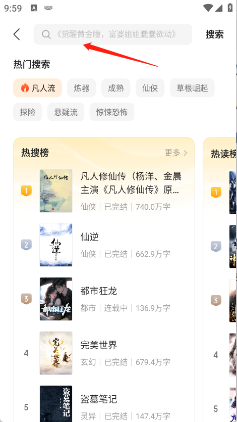 1、首次启动沐香小说应用后,在首页顶部的搜索栏输入感兴趣的书名或作者名,系统会实时显示匹配结果供选择。