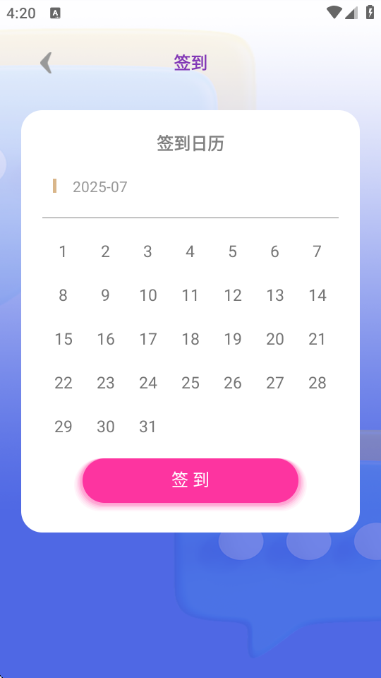 1、以直观的日历形式显示签到细节,帮助用户跟踪他们的参与情况。