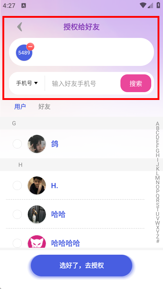 5、点击“授权好友”后,可以查看该软件的用户信息,也能查看自己的好友列表。