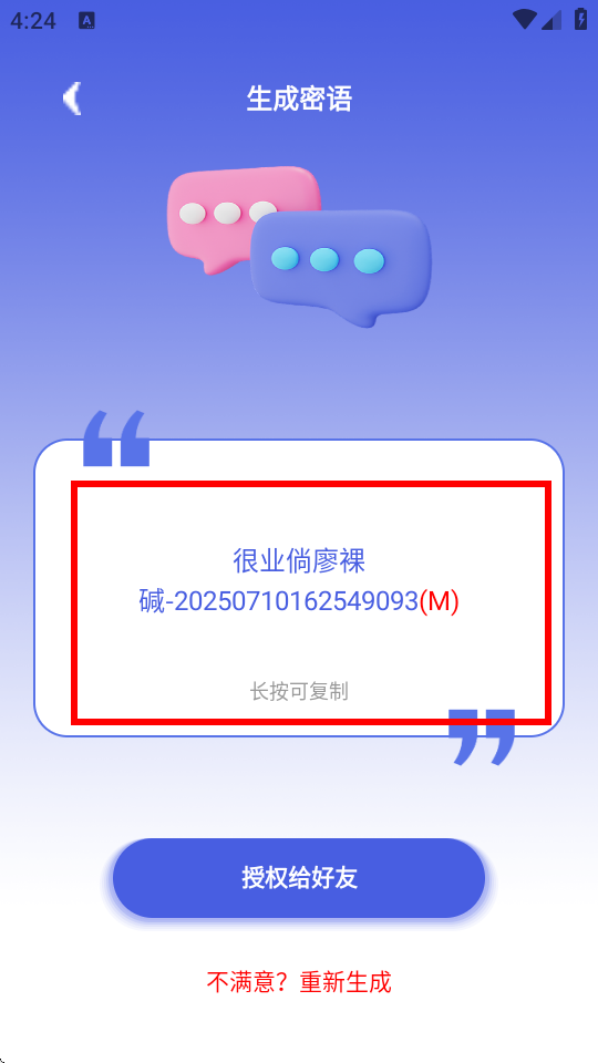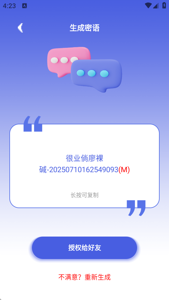 3、喵喵社交旧版本系统就会生成相应的密语内容啦。