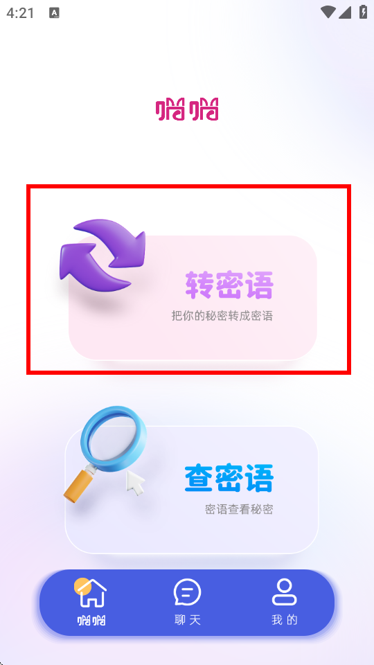 1、可以把想对好友说的话转换成密语,点击“转密语”即可。