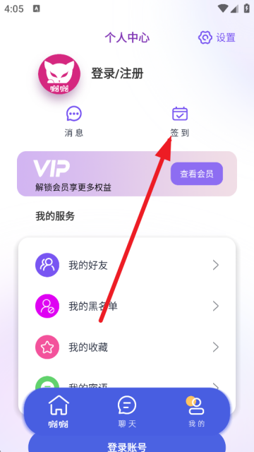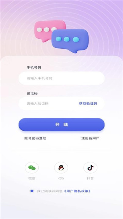 1、打开喵喵社交聊天室APP后,选择合适的登录方式进行登录,即可直接在线查找好友并开始聊天。