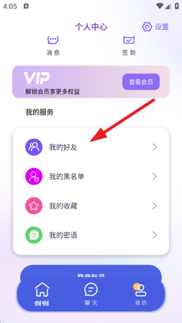 5、在个人中心,可以查看好友列表、收藏内容以及密码等信息,同时还可以查看会员到期时间。
