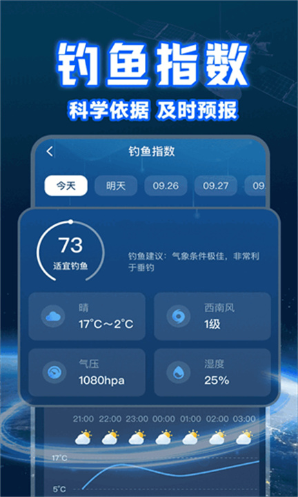 实时卫星天气预报免费版清晰直观的天气显示模式,结合动态背景地图,让用户对当天的天气情况一目了然,整合最新PM数据,帮助用户随时关注空气质量,制定合理的户外活动计划,根据天气情况智能推荐钓鱼建议,提高钓鱼成功率,享受更多乐趣,所有功能均免费提供,无需担心额外费用,满足用户日常需求。