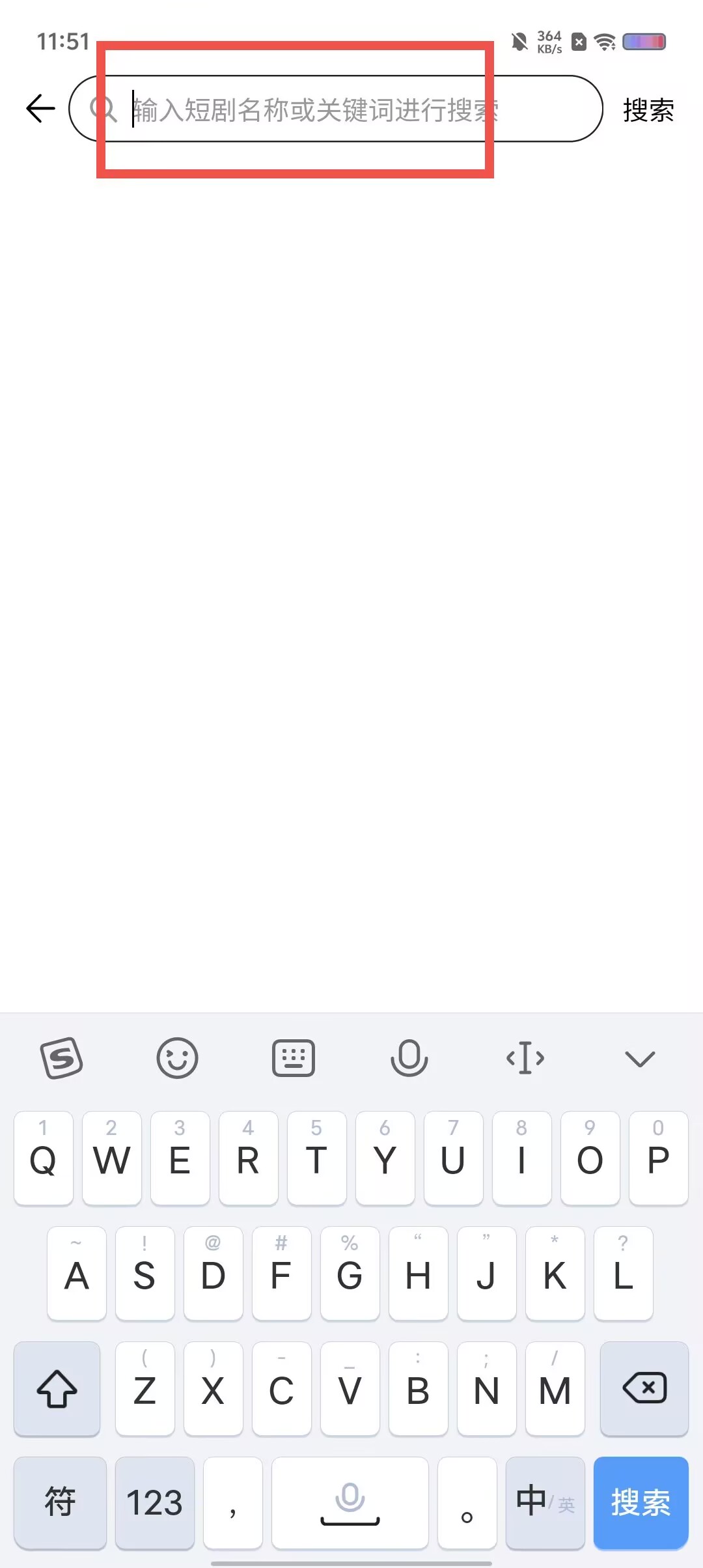 2、在搜索界面输入你想要搜的短剧名称关键字,点击搜索。