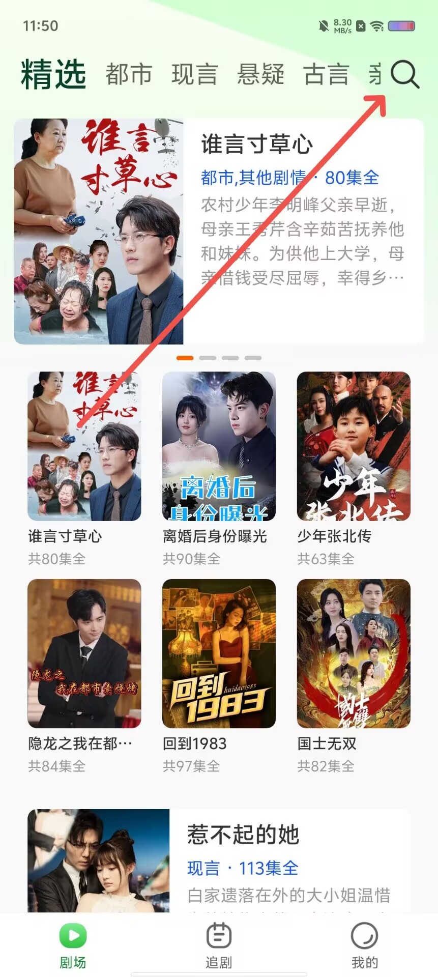 2、搜索剧集:通过关键词快速定位想看的剧集。