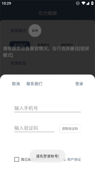 1、在本站下载引力锁屏安装后,点击打开进入app,然后进行注册并登录账号。