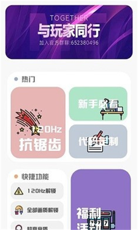 2、首页顶部会显示当前最热门的优化功能,你可以根据自己玩的游戏类型或设备性能需求,选择对应入口进行设置。