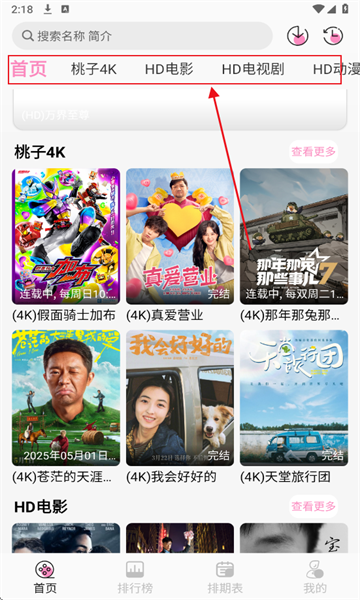 1、下载安装并打开桃子视频软件后,可以在最上方的分类中查找自己感兴趣的影视剧。