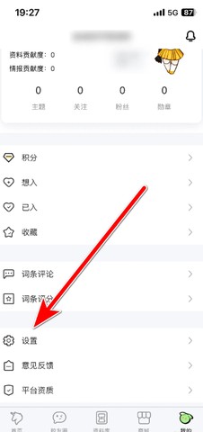 在个人中心页面中选择【设置】进入设置界面。