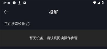 3、在搜索到的设备列表中选择目标投屏设备,即可开始投屏。系统会自动查找可用设备,请耐心等待。如果设备没有被检测到,可能是该设备不支持投屏功能。