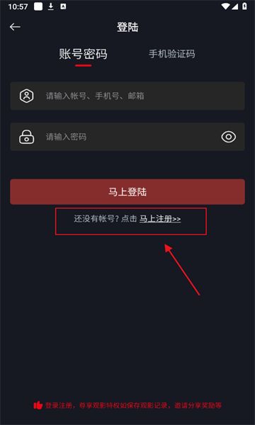 4、如果还没有账号,可以点击下方的【马上注册】进行注册。