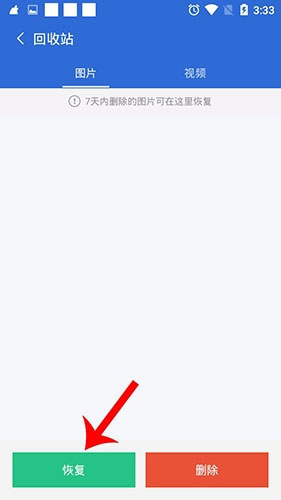 3、选择要恢复的照片,点击“恢复”。