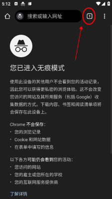 3、在不可见模式下,点击右上角的图标,如图所示;