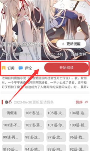 3、选择具体作品进入详情页面后,点击“开始阅读”按钮即可立即阅读漫画章节内容。