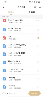 2、这个生活我们就可以选择你下载的书籍,并点击下方的导入书架;