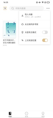 1、点击书架板块,选择右上方的选项图标,并选择导入书籍;