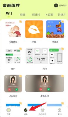 2、点击底部的“Components”进入桌面组件区,可以选择倒计时、快捷方式等样式。