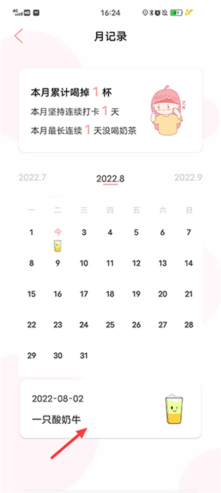 3、在日历上快速查看本月喝奶茶的情况,浏览大量的奶茶食谱。