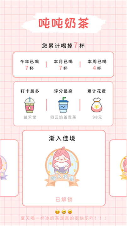 4、吨吨奶茶签到记录下你每天的奶茶套路,和别人分享你觉得好吃的奶茶。