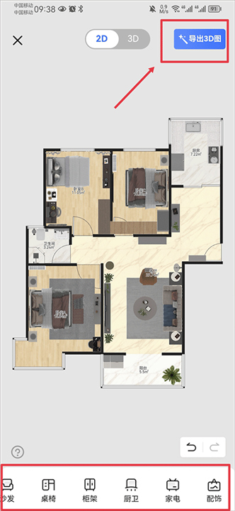6、最后,您可以使用下面的菜单栏来定制您的家。自定义完成后,点击“导出3D图像”,就完成了。