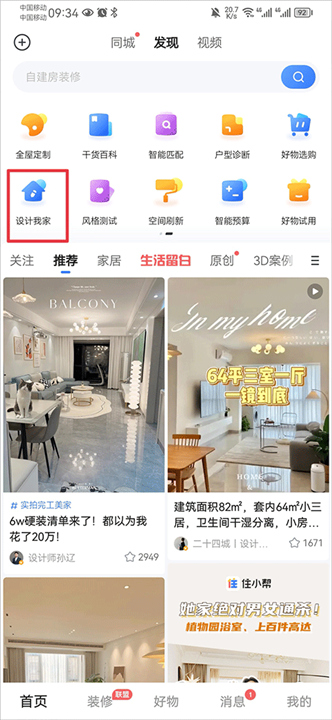 1、在首页的“发现”页面,点击“设计我的主页”。