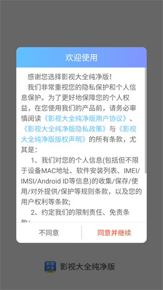 1、在本站下载安装蓝猫影视大全最新版本软件后,首次打开时需要仔细阅读并同意软件的隐私协议才能继续使用。