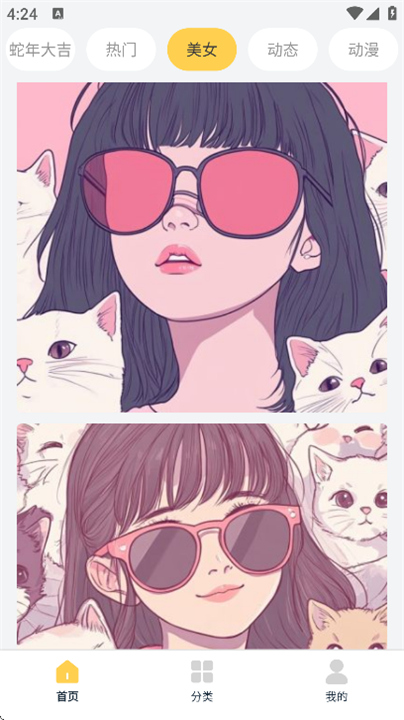 4、软件对壁纸资源进行了分类,用户可以根据分类方便地搜索到各种漫画壁纸。