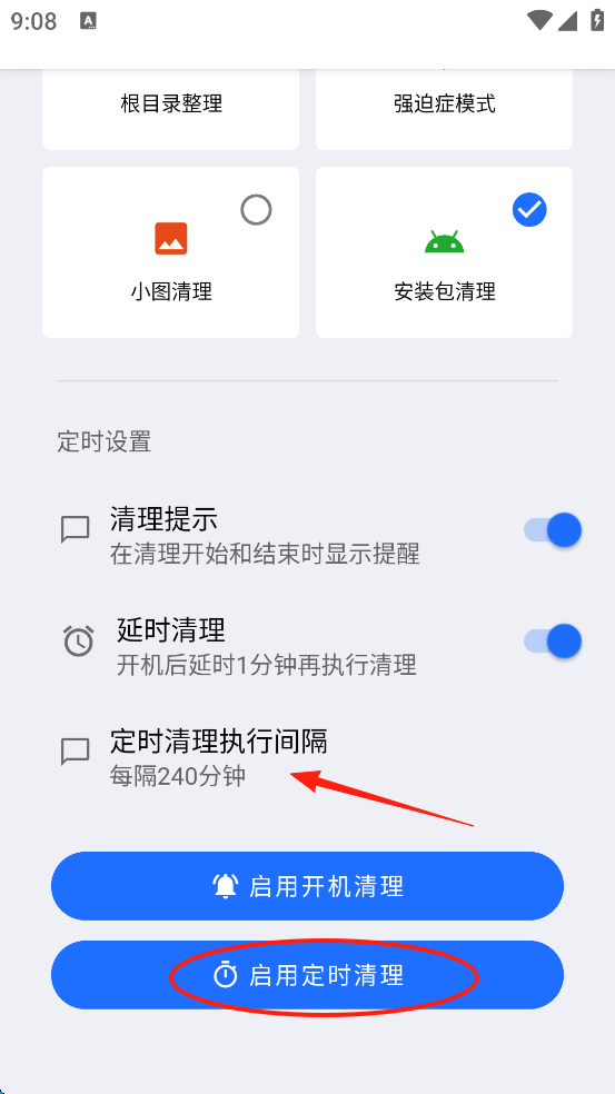 4、您可以选择在启动时执行亲历,也可以单击“计划清洁执行间隔”来定义间隔时间,最后单击屏幕底部的“启用计划清理”。