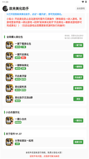 1、集成了多种游戏美化包,用户可以根据装备需求自由选择,打造个性化的游戏体验。