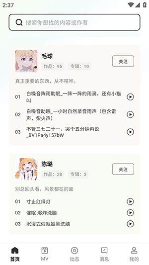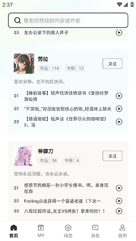 3、同时也可以使用搜索功能,快速查找想要的音频或内容。