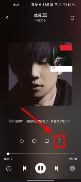 2、搜索后,点击歌曲右侧的三个点,下面会弹出多个功能,如下图所示。