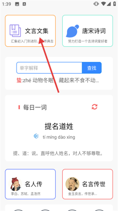 1、沛沛文言文翻译在首页点击【文言文文集】进入文言文主题页面。