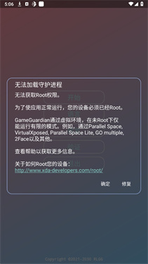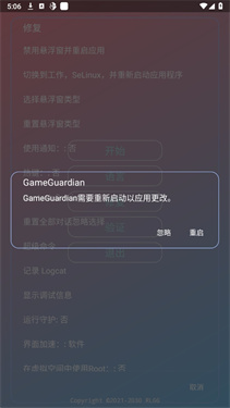 5、返回主界面后再次点击“开始”或“修复”,系统会自动完成相关配置,并实现GameGuardian的环境适配与启动流程。