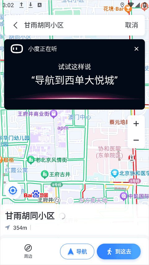 2、即可调出小度语音,用户可以直接说出想去的地点;