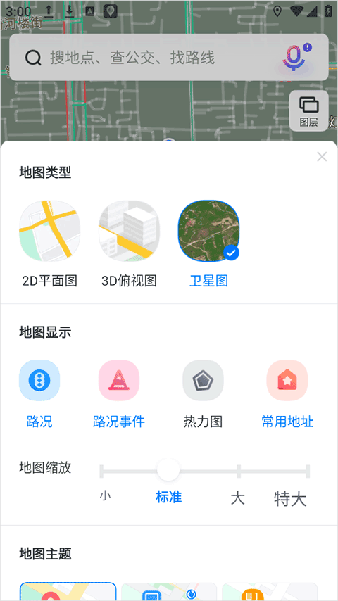8、App还支持卫星图、平面图及3D地图等多种地图图层显示。