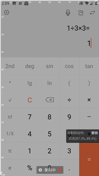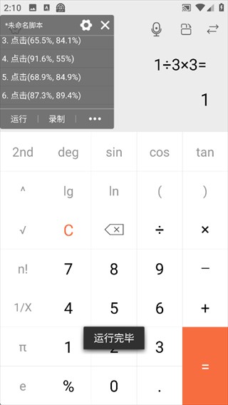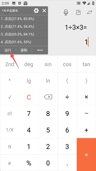 6、设置完成后会出现录制脚本的悬浮窗口,此时打开任意应用或游戏(这里以简单的计算器操作为例,也可以录制更复杂的游戏刷资源脚本),点击上方的【开始录制】。