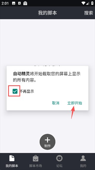 3、随后再次点击制作,会提示自动精灵获取屏幕显示内容权限,点击【立即开始】继续。