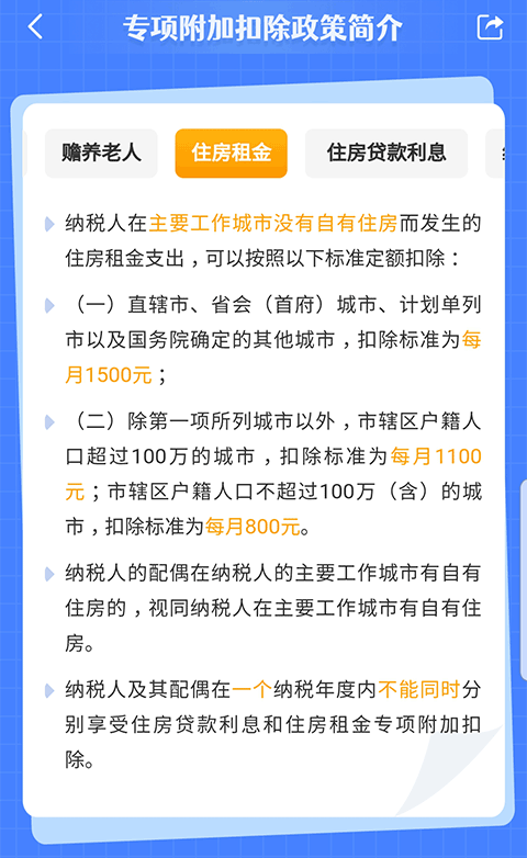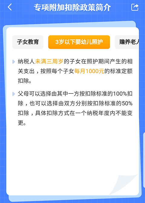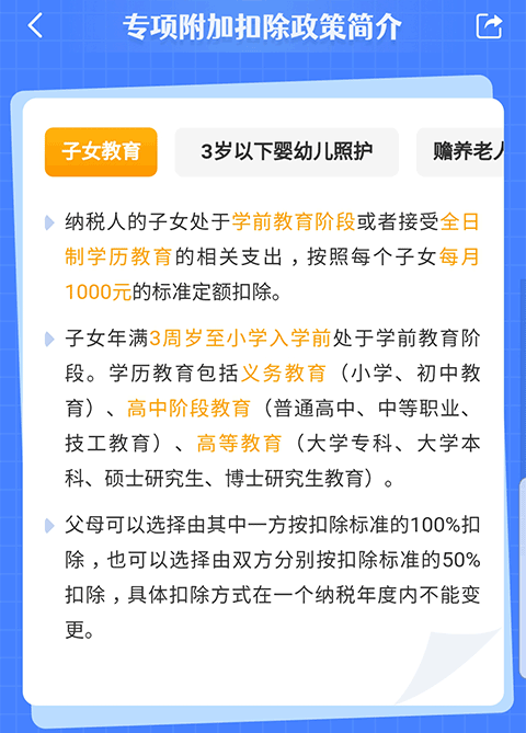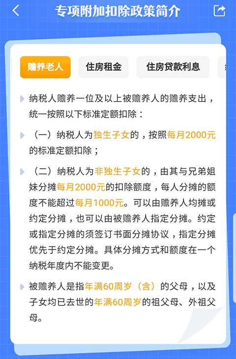 个人所得税手机版目前个税专项附加扣除已经扩展为7项,分别涵盖子女教育、继续教育、大病医疗、住房贷款利息、住房租金、赡养老人以及3岁以下婴幼儿照护。