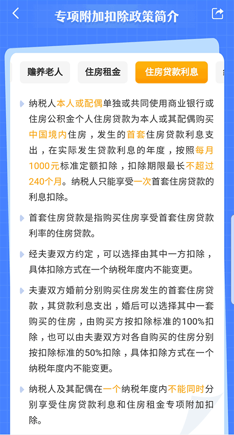 纳税人支付的住房贷款利息可按每月1000元固定额度扣除,扣除期限最长不超过240个月。