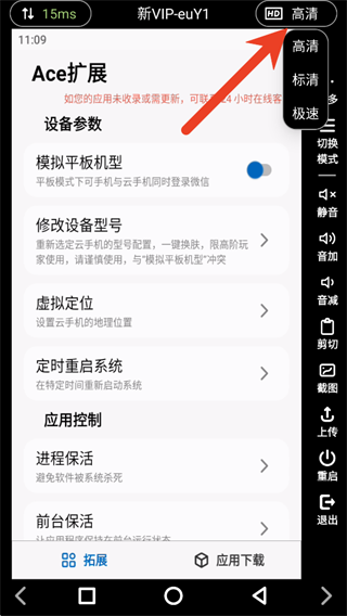 1、打开Ace云手机最新版后进入“拓展与应用”页面。