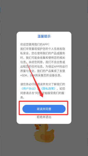 1、点击“阅读并同意”按钮,进入下一步操作。