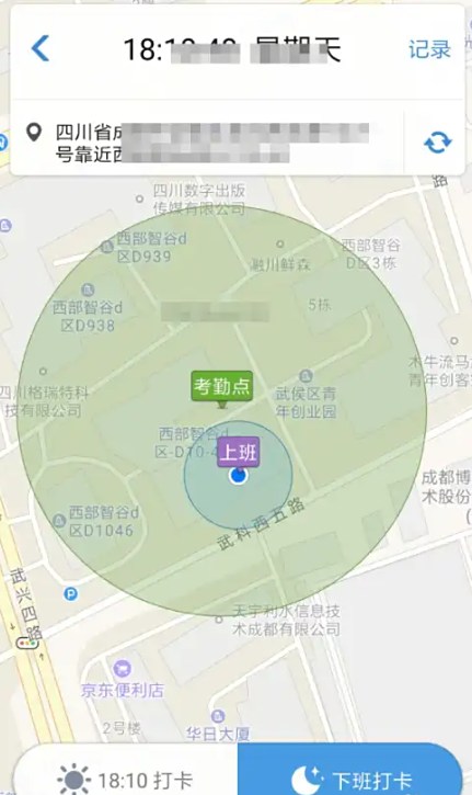 3、打卡时系统会自动记录时间和位置信息,小步外勤会根据公司制度智能分析迟到、早退、调休、打卡异常等情况。打卡完成后,软件会开始实时定位员工,领导也可以随时在手机上查看员工当前位置。