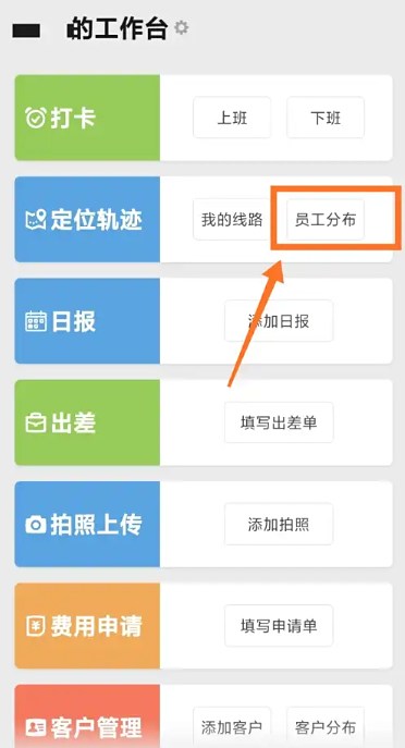 4、点击工作台中的“员工分布”,进入员工分布界面,可以查看下属员工的位置情况。