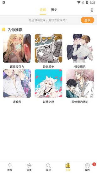 2、打开奇妙漫画免费版后,可以选择注册新账号,或直接使用已有账号进行登录。