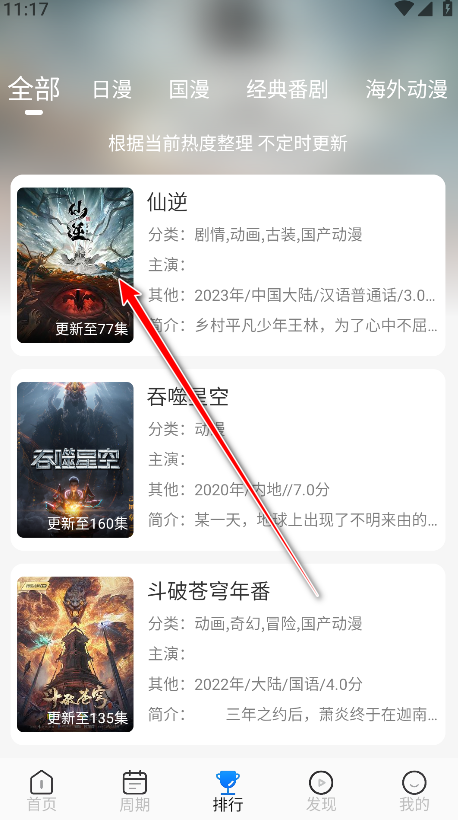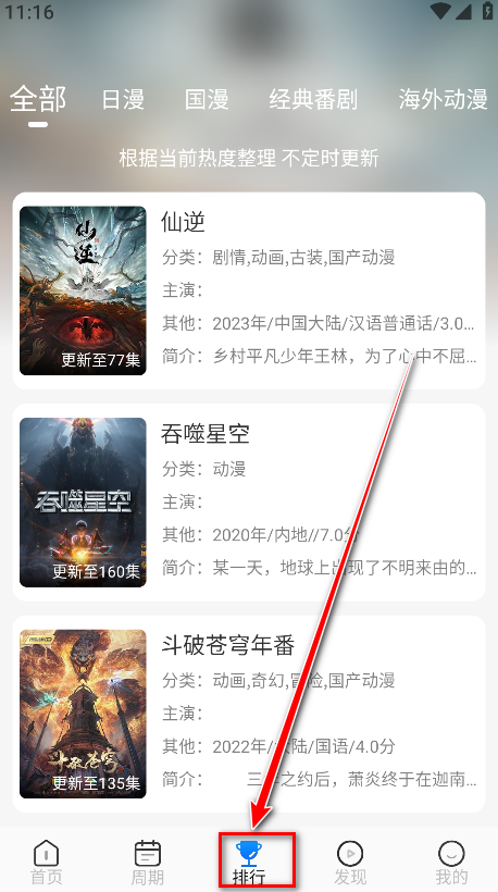 2、进入“周期”栏目,可以查看平台每日按时更新的漫画或动画资源内容。